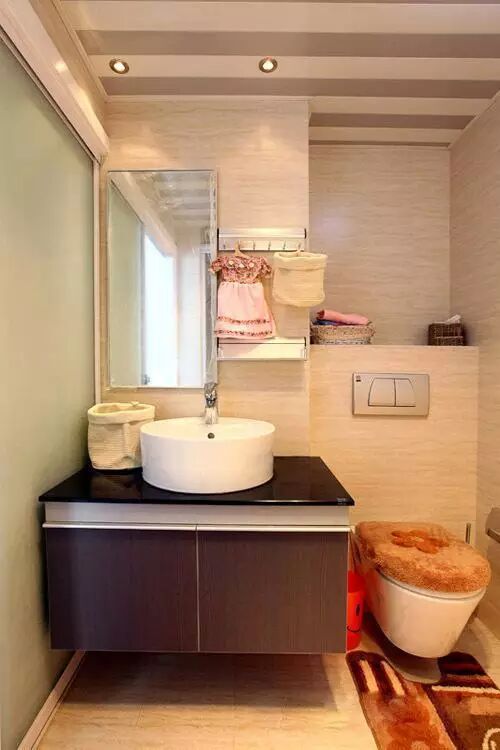卫浴室强调实用,收纳功能良好。