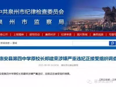 惠安县第四中学原校长郑建荣涉嫌严重违纪,目前正在接受组织调查。(惠安县纪委监察局)